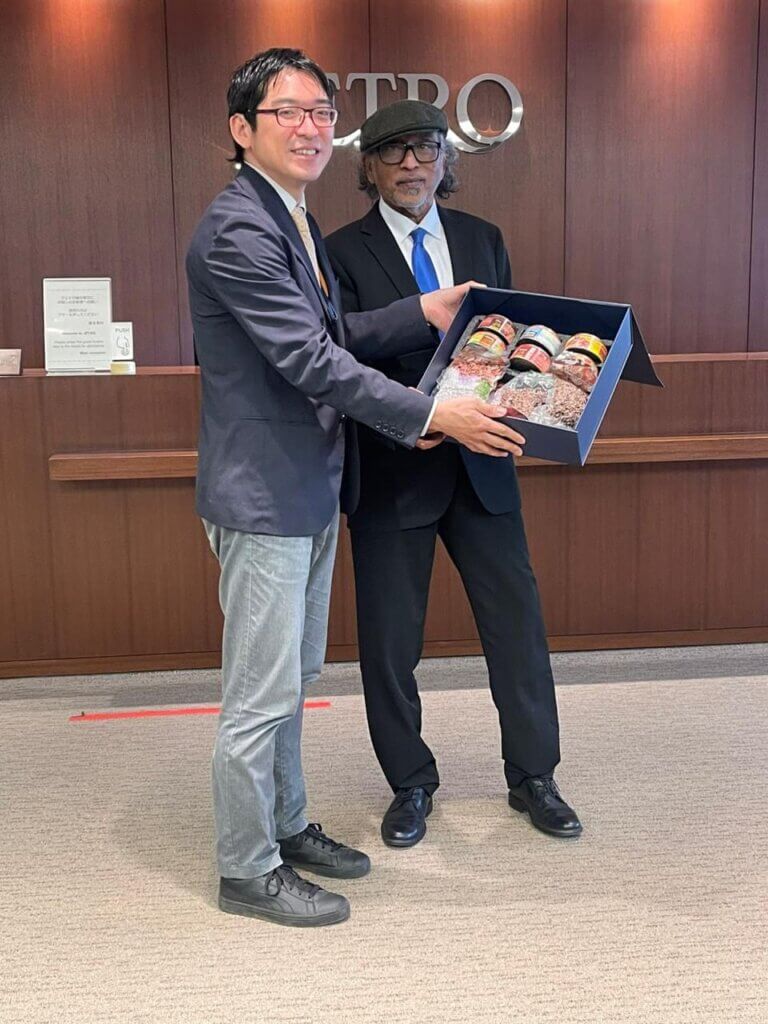 The Maldives Industrial Fisheries Company (MIFCO) held a strategic meeting today with the Japan External Trade Organization (JETRO) at its Tokyo headquarters as part of an official visit aimed at expanding business opportunities and strengthening the presence of Maldivian fisheries products in the Japanese market.